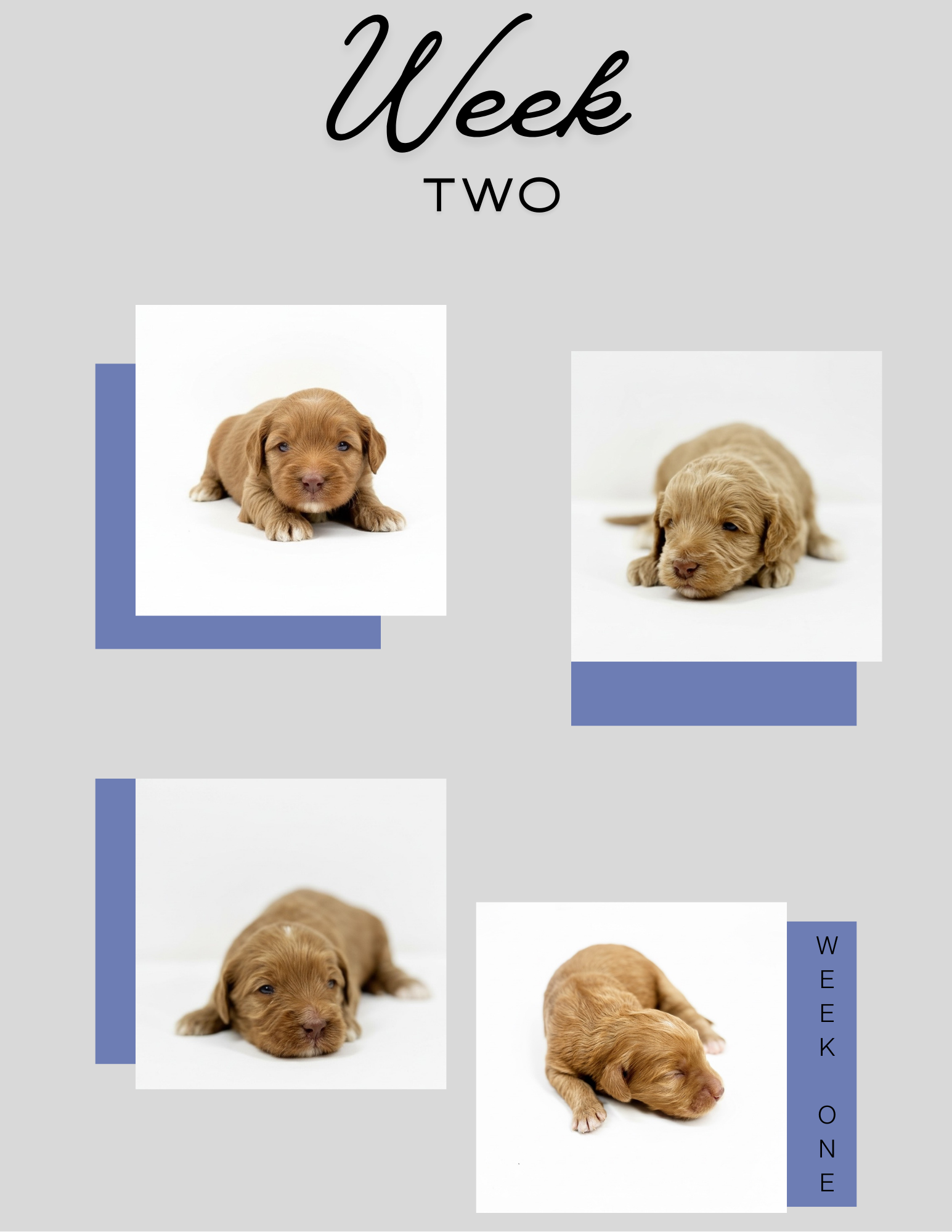 At one week we don’t really have a lot of personality to talk about. Let me tell you about what we do know. Elliot is one of the two boys in the litter. We are calling these boys the twins! They are so similar looks wise its going to be hard to tell them apart. They both have white markings in the same place and beautiful wavy coat texture.